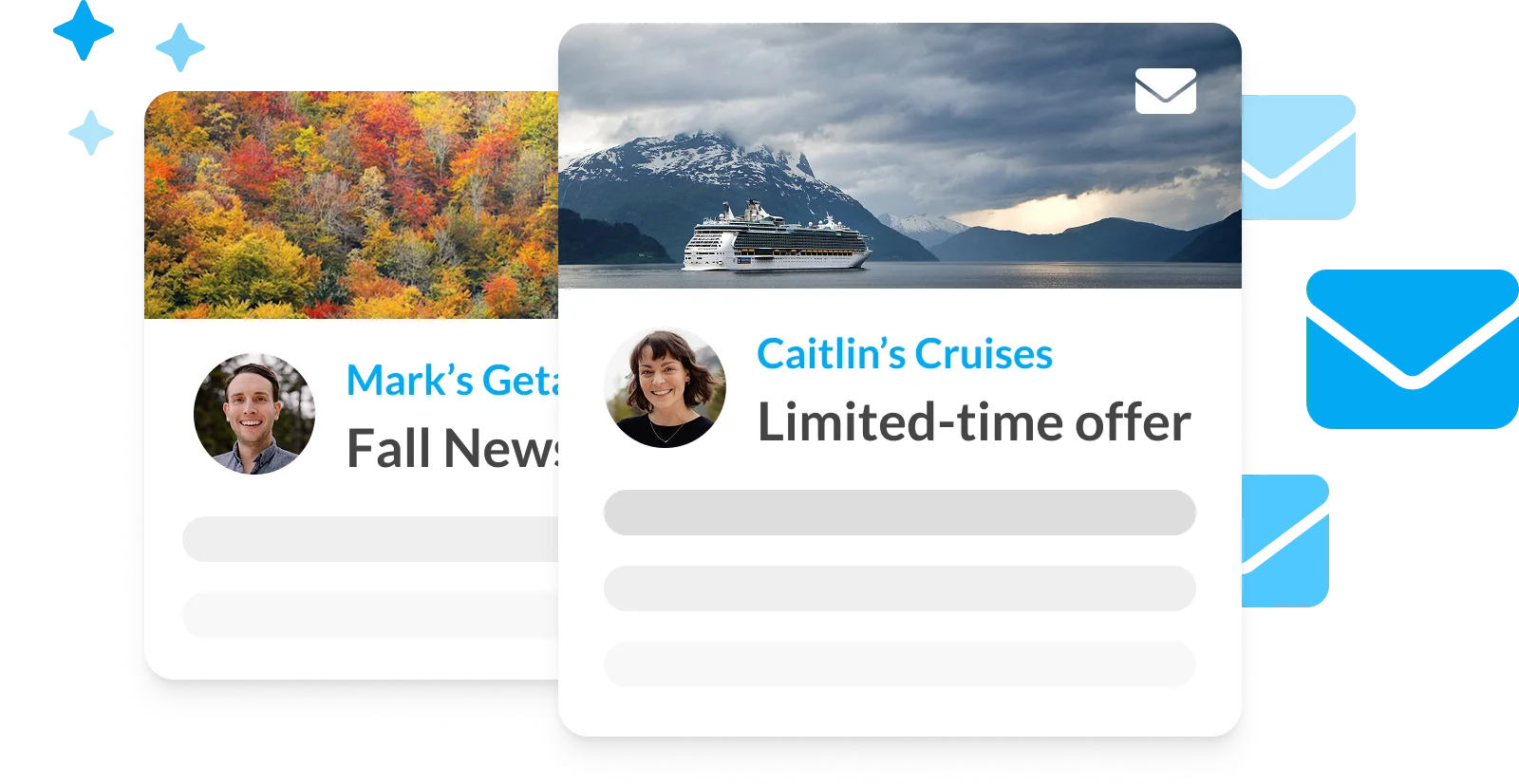 Stay connected with past clients and nurture new leads with consistent, thoughtful communication, all from within TravelJoy. Share destination ideas, travel trends, special offers, and timely tips to keep your services top of mind and encourage repeat bookings.